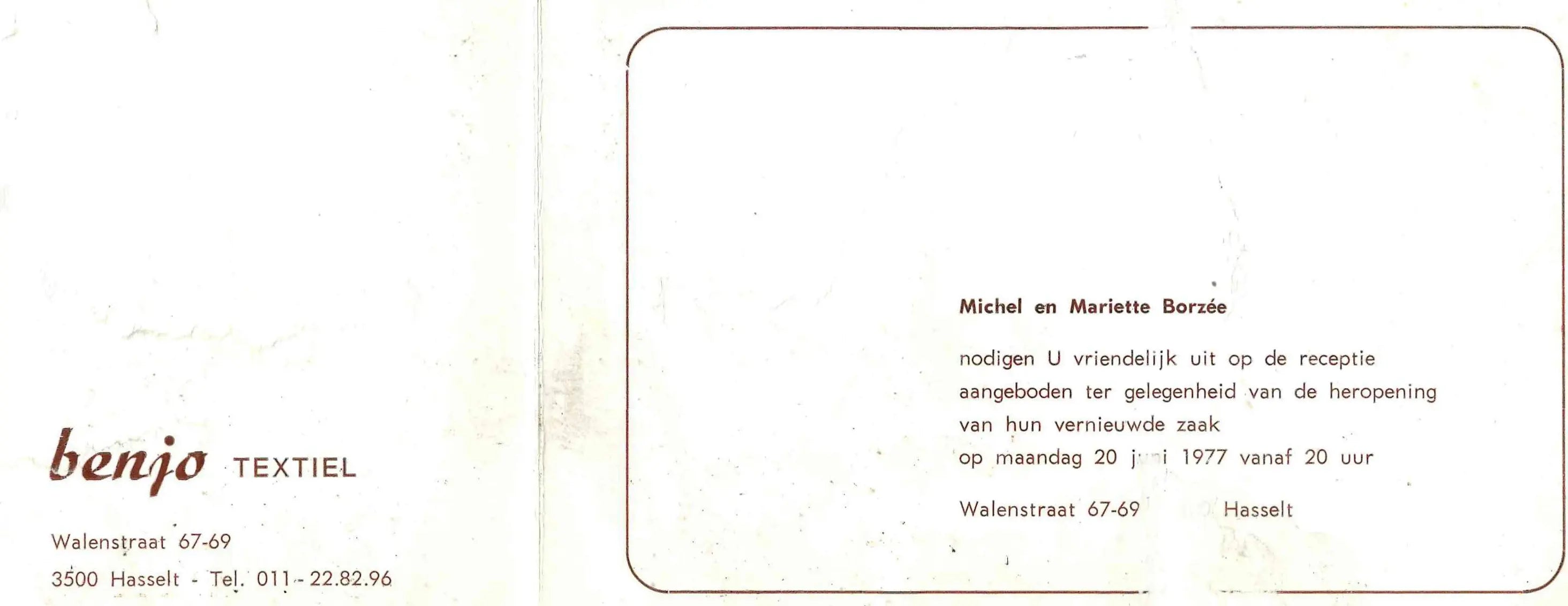 Michel en zijn vrouw Mariette geven niet op. Samen met zoon Benny Borzée bouwen ze Textielgroothandel Benjo uit tot een begrip in Hasselt en omstreken.